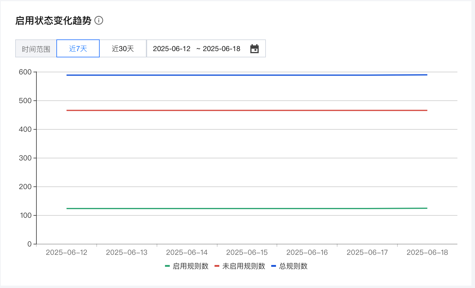 展示所选时间范围内,所有规则的启用情况分布,同时,支持您按照时间区间快速筛选。