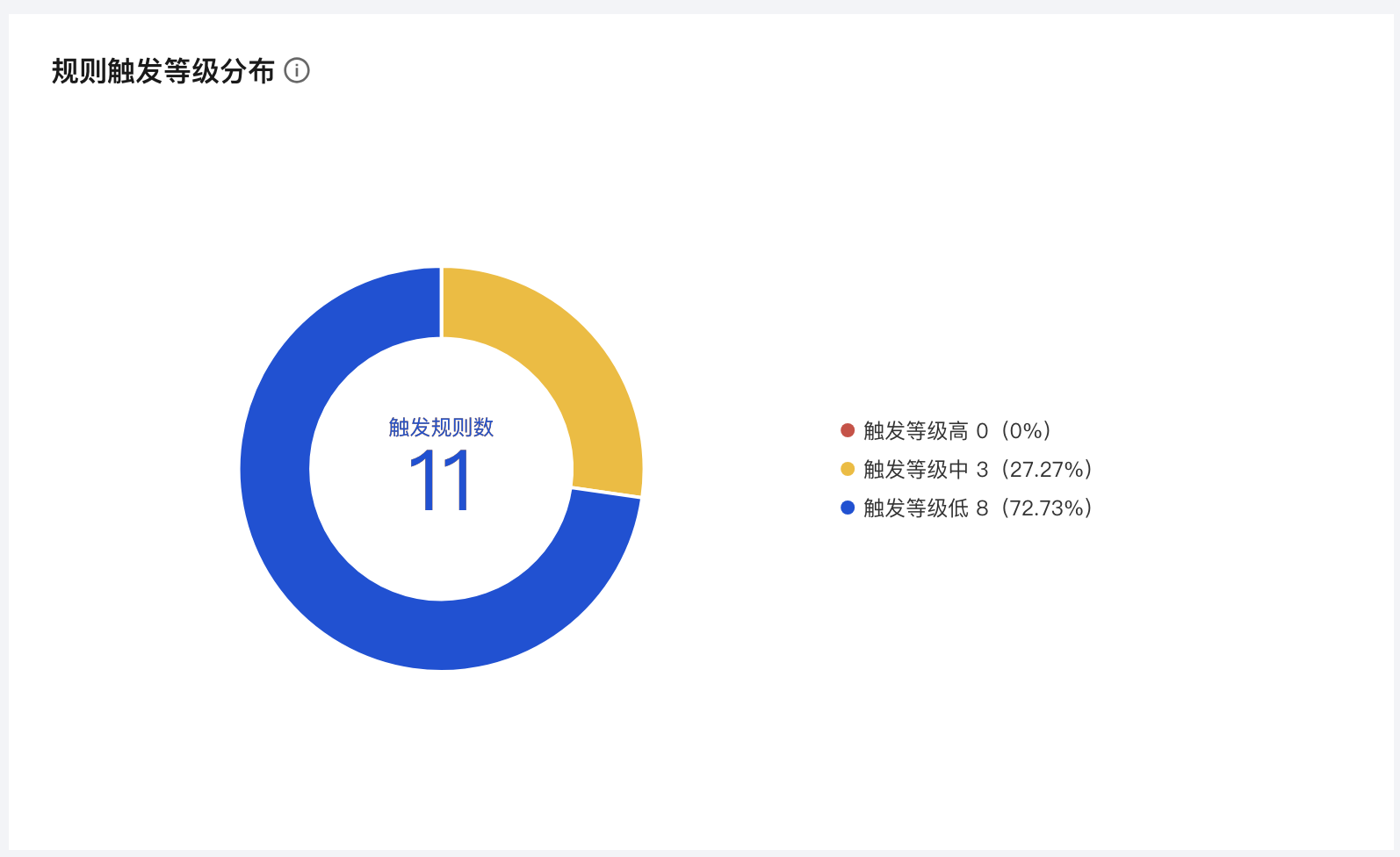 鼠标悬停至环状图色块可展示出触发规则等级详细数值和比例分布。