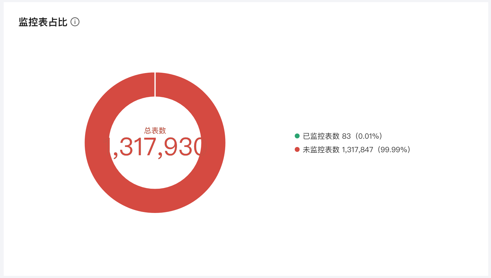 监控覆盖率 = 已监控表数(有已启用的质量规则的表)÷ 总表数