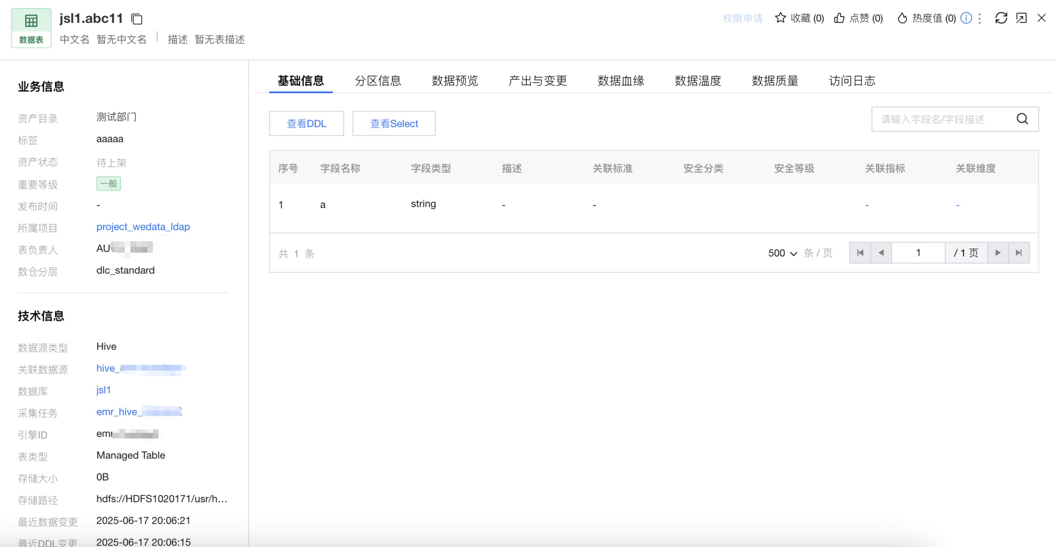 进入资产目录盘点页面,在列表中,单击表名来查看表详情。