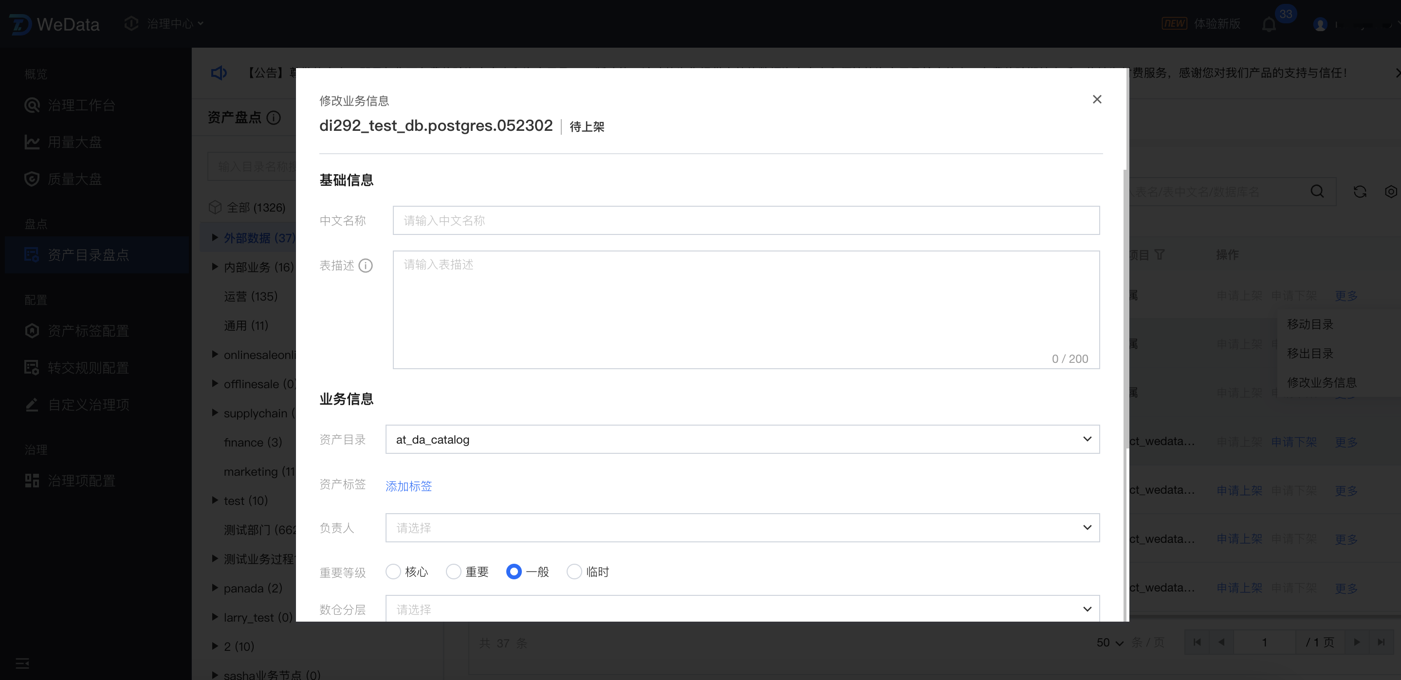 对表的盘点:添加表、移动(批量移动)表、表上下架(批量上下架)、表下载、修改表重要等级、修改表业务信息等。