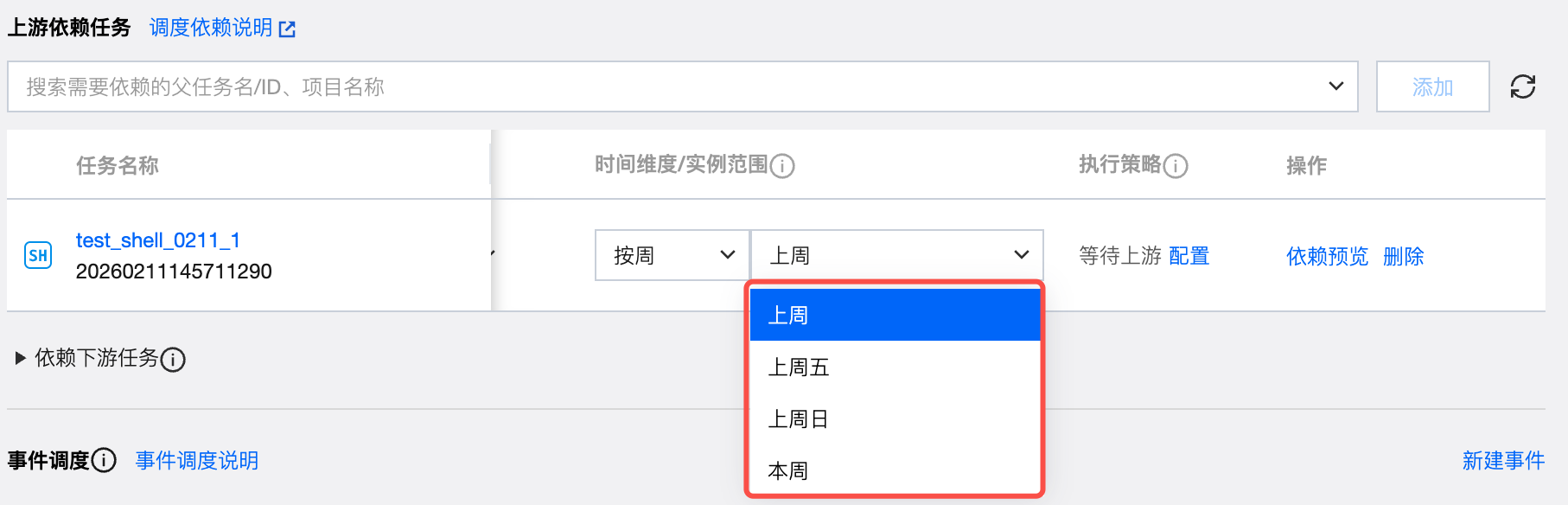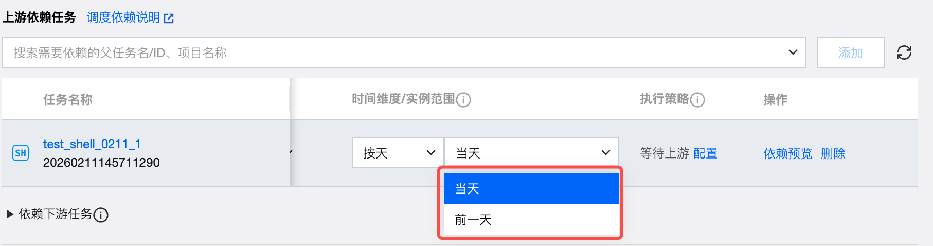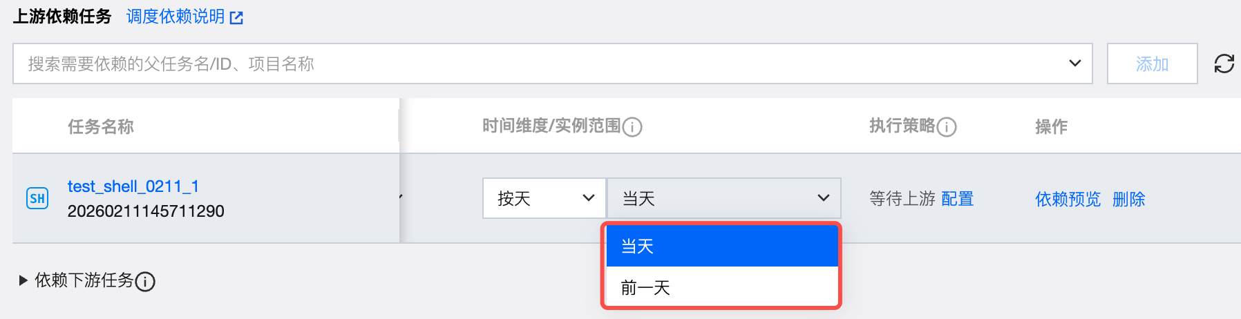 功能入口:任务配置 > 调度设置 > 上游依赖任务
