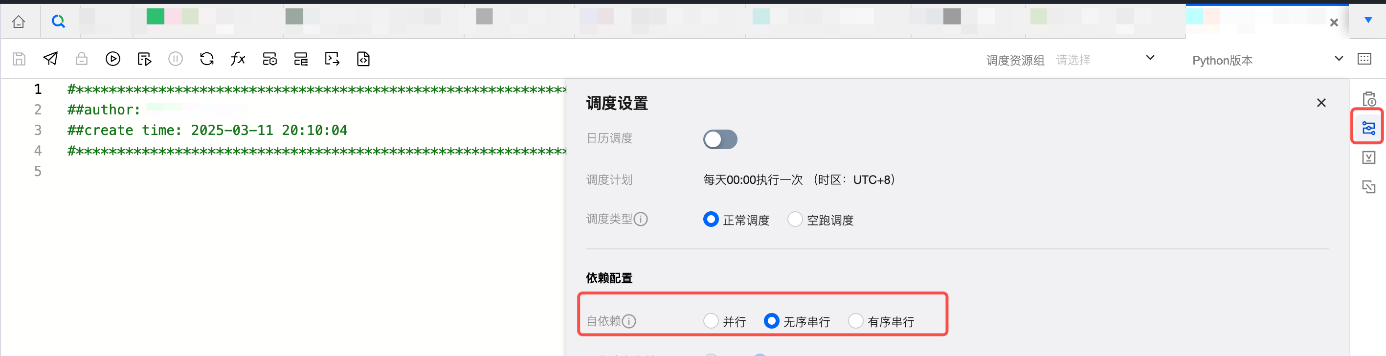任务自依赖是指同一任务中不同实例之间的依赖关系。当前支持的自依赖配置有:并行、无序串行、有序串行。