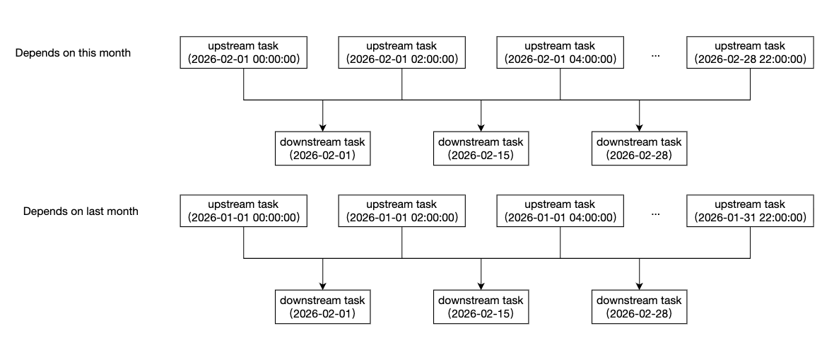 月 | 1. 按月/上月:依赖上月内所有分钟实例。 2. 按月/本月:依赖本月内所有分钟实例。 |