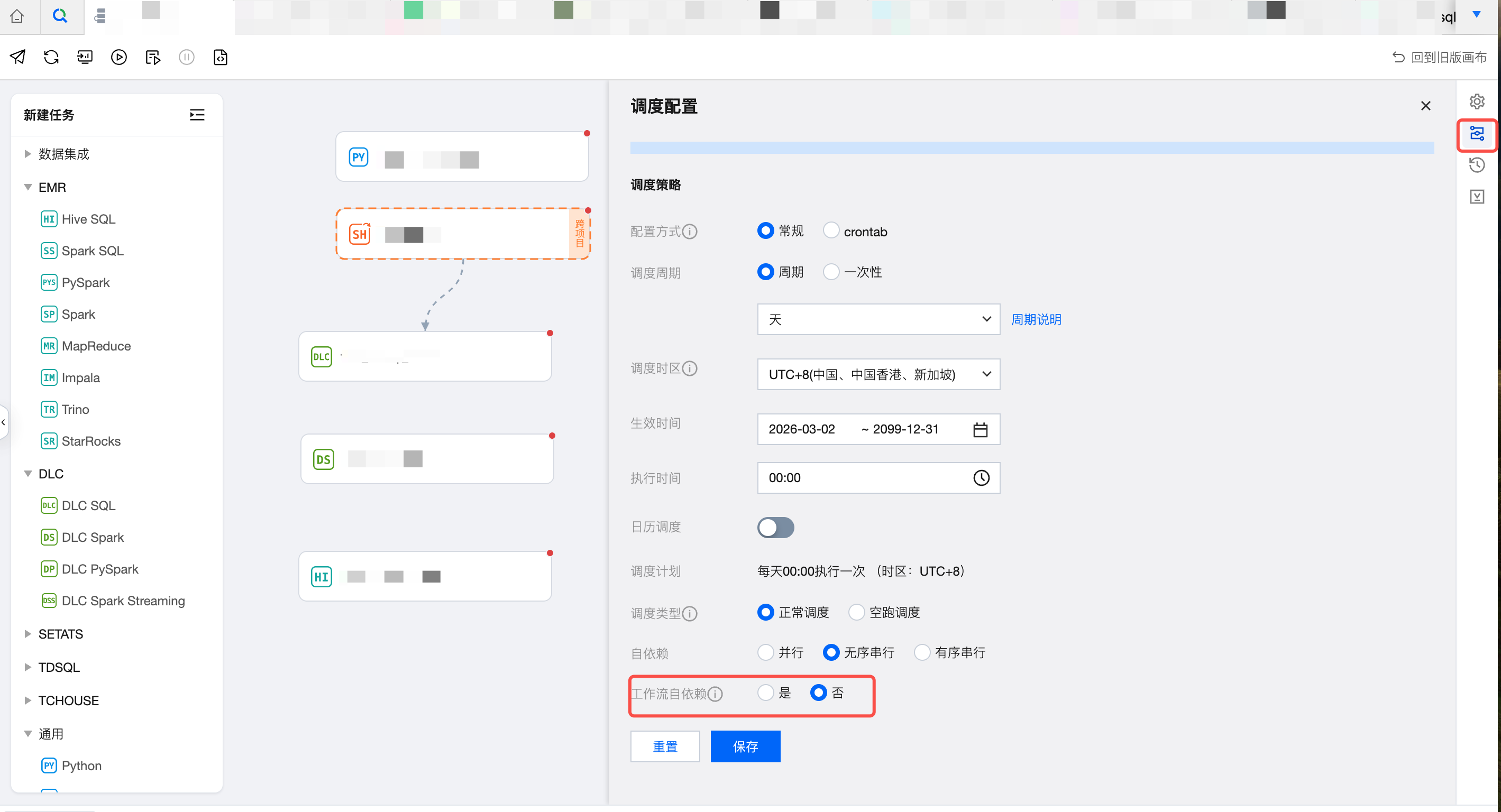 所属工作流:依赖任务所属的数据工作流。