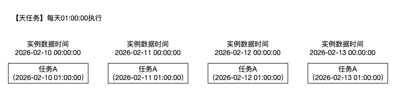 以每天01:00:00执行为例,生成实例的情况如下: