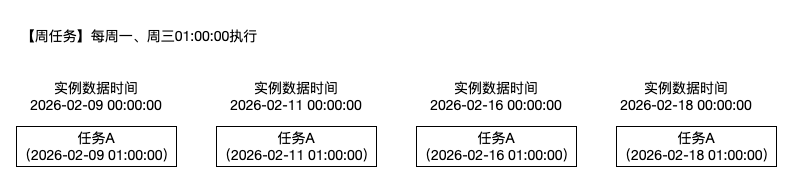 举例:每周一、周三 01:00:00执行,调度详情如下图。