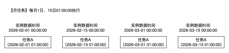 执行时间 | 月任务执行时间可选择时分, 生成的实例到达指定日期的执行时间后开始执行。 |
