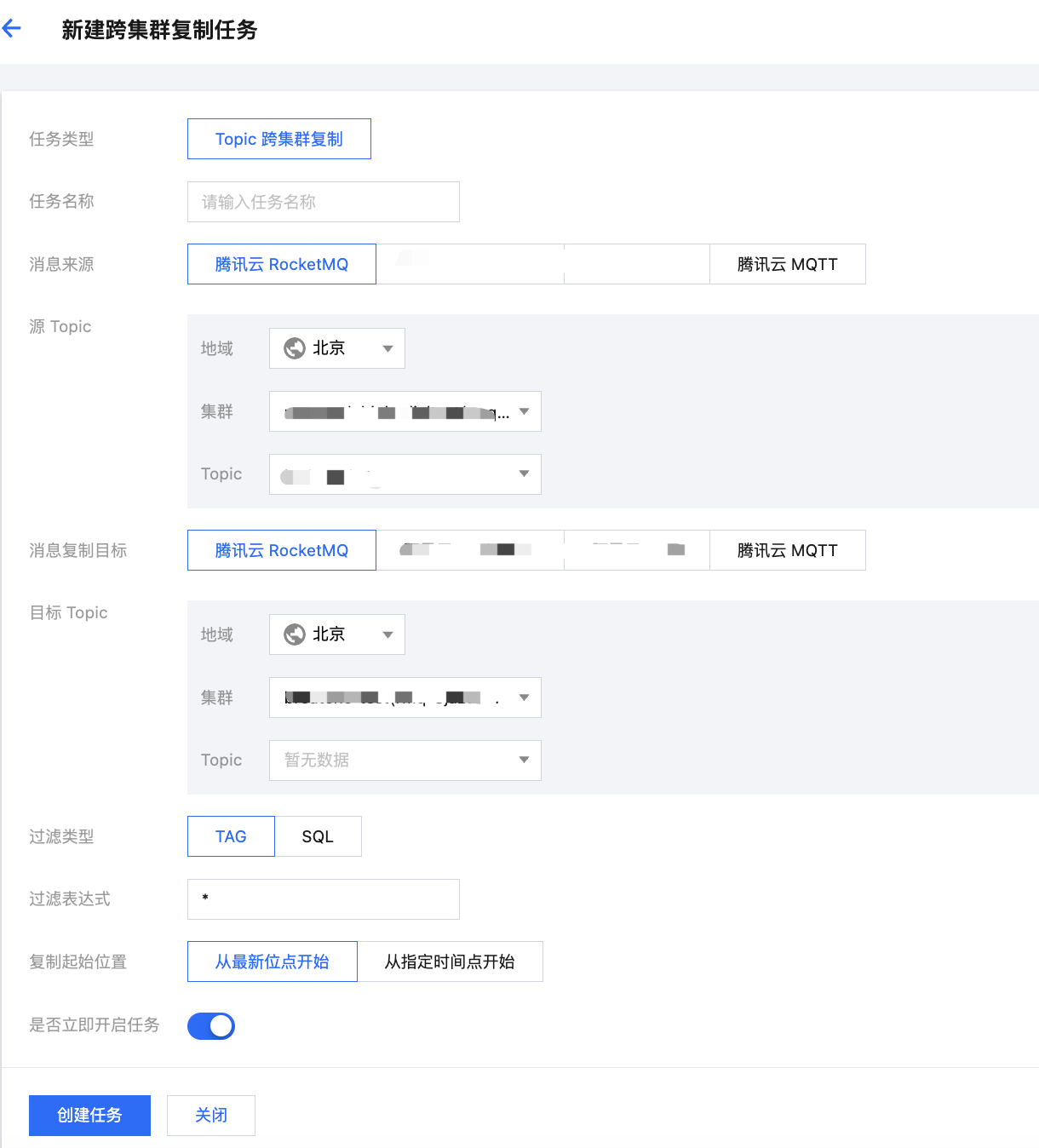是否立即开启任务:如果打开开关,在任务创建完成后就按照当前任务的配置进行复制。