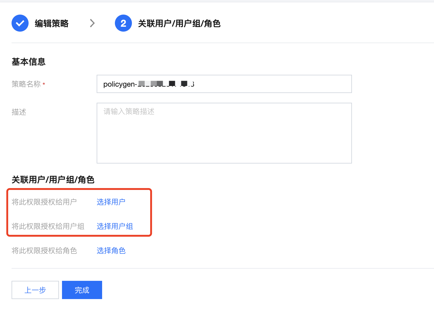 8. 单击完成,授予资源权限的子账号就拥有了访问相关资源的能力。
