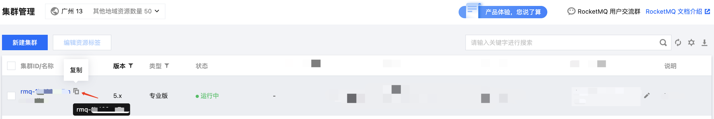 步骤1:获取 RocketMQ 集群的资源 ID
