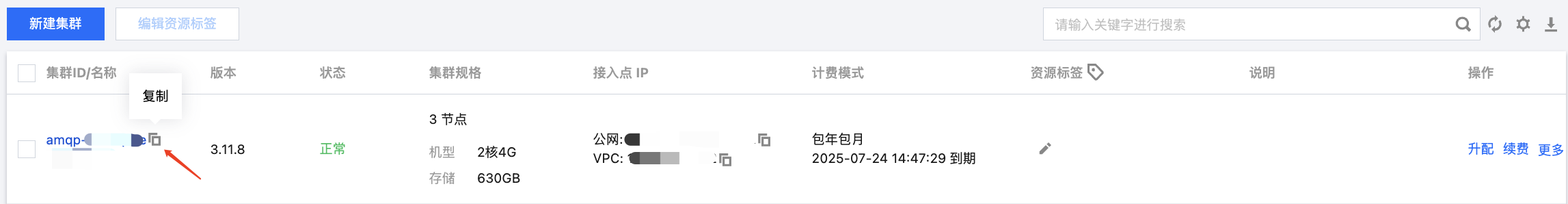 2. 在左侧导航栏选择集群列表,选择好地域后,复制目标集群的“ID”。