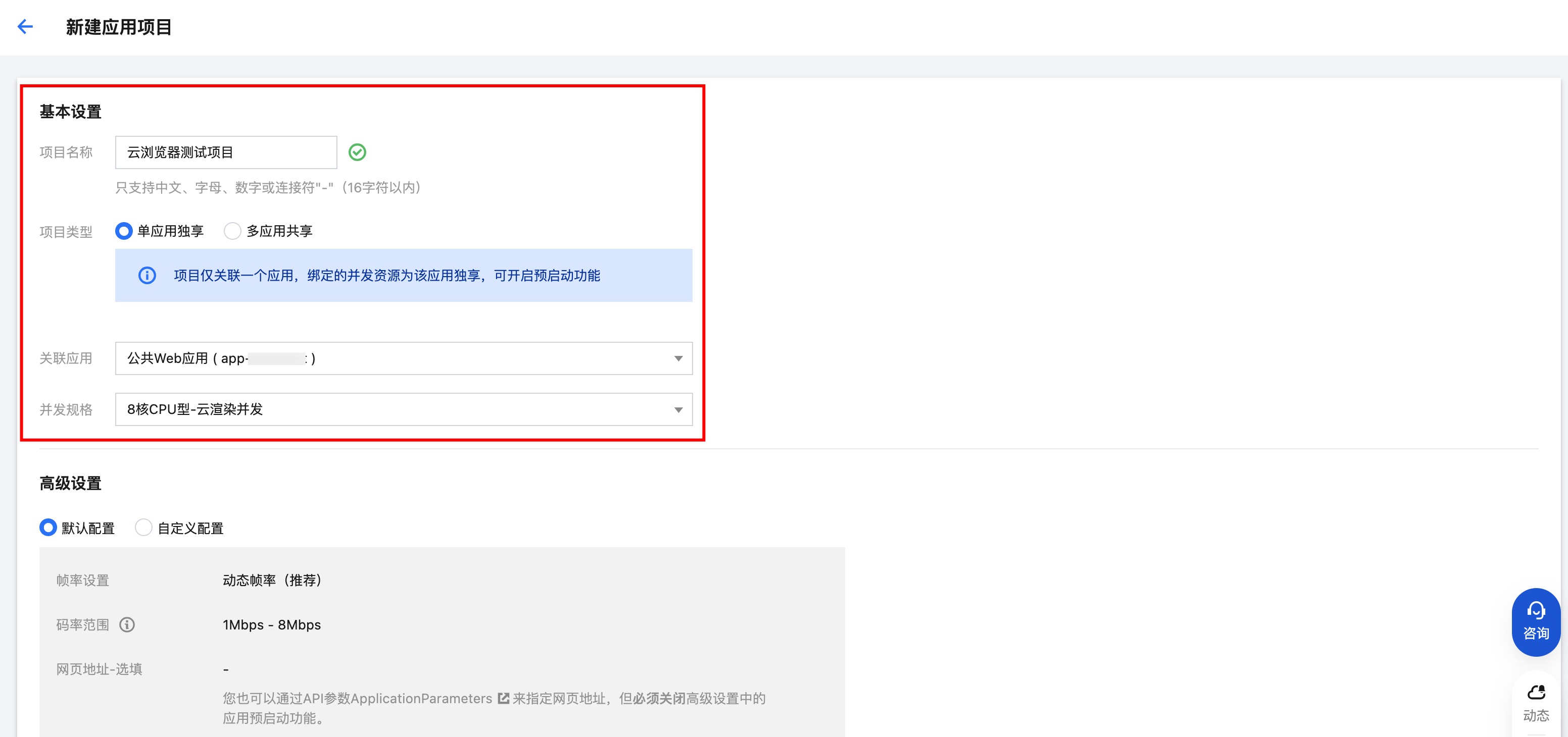 2.2 勾选项目类型:按照需要选择单应用独享或者多应用共享。