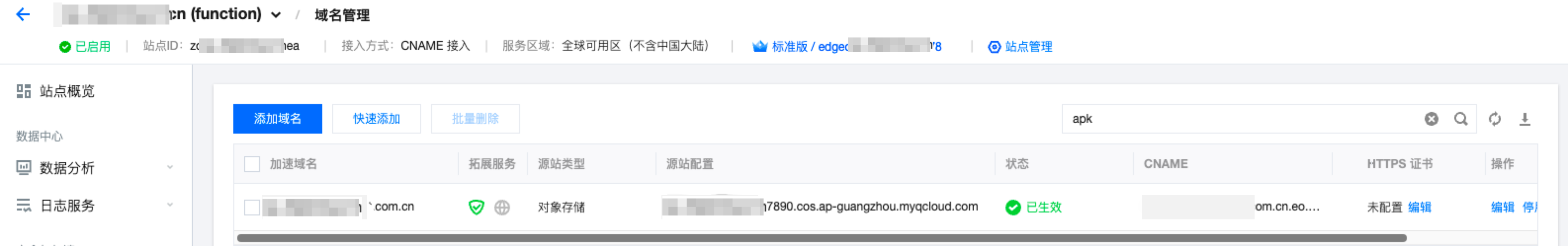 步骤1:添加用于加速分发的加速域名