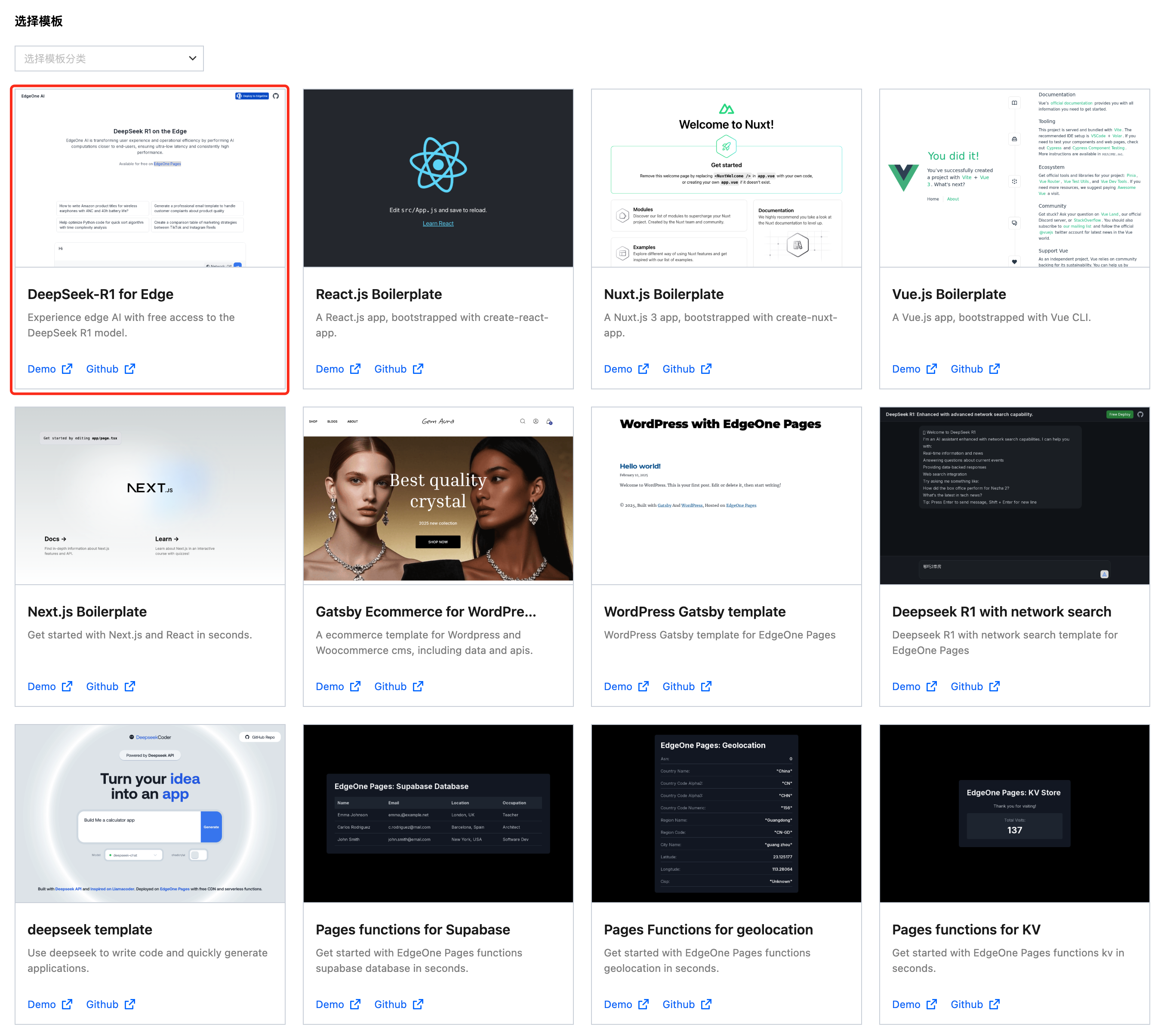 1. 授权 Github 后,选择一个需要部署的模板。