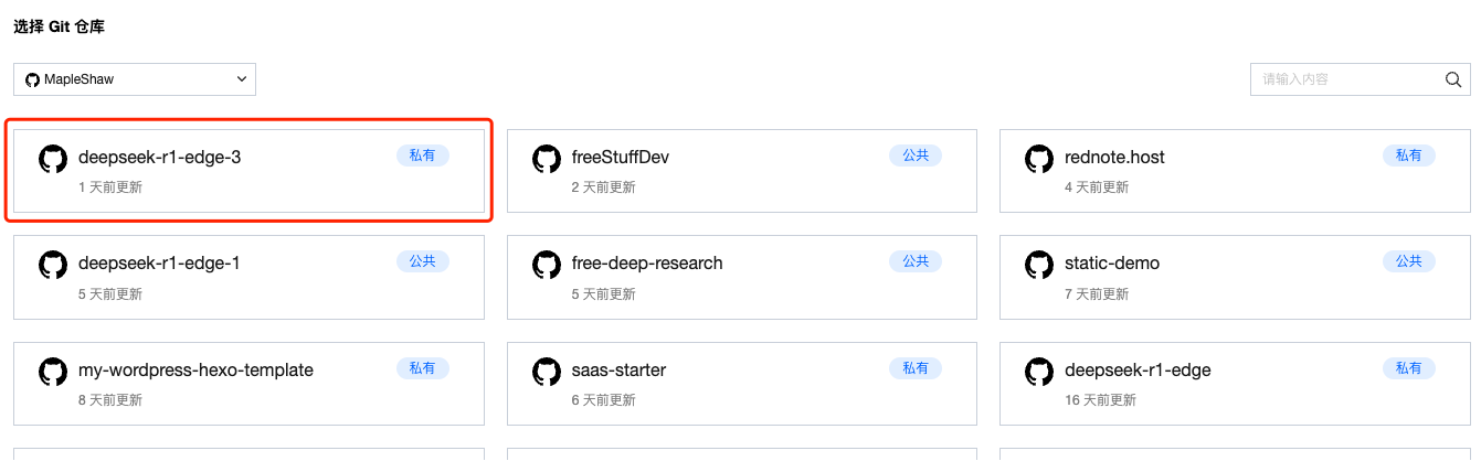 1. 选择您要部署的仓库。