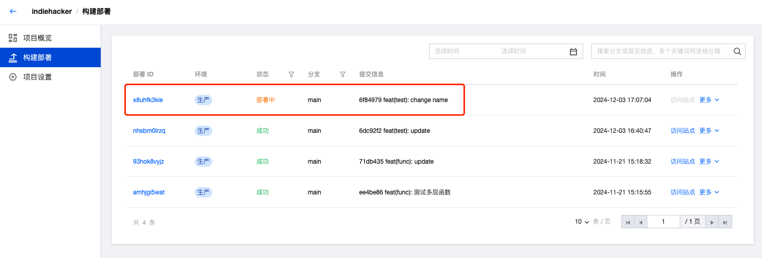 当新的提交推送到主干分支时,EdgeOne 将自动拉取并部署最新的提交。