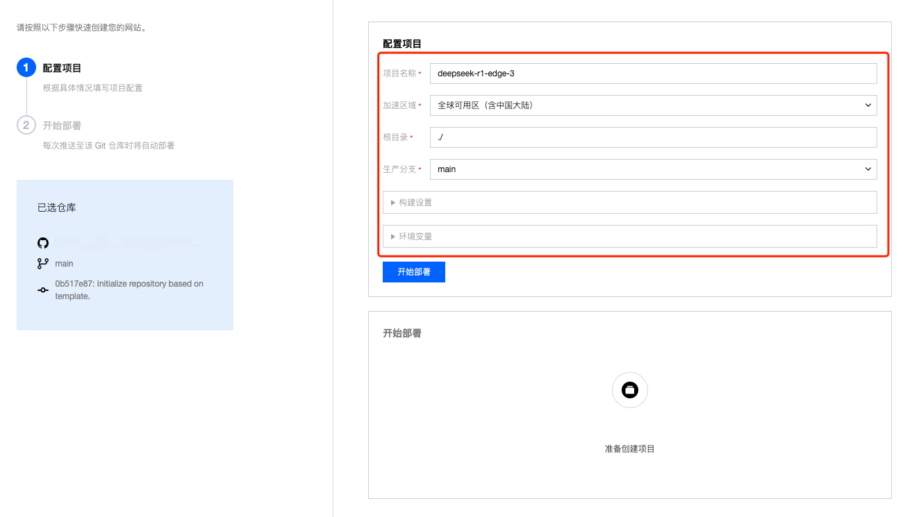 3. 检查您的配置项,确认无误后,点击开始部署,Pages 将自动构建您的项目并将其部署到全球边缘网络。