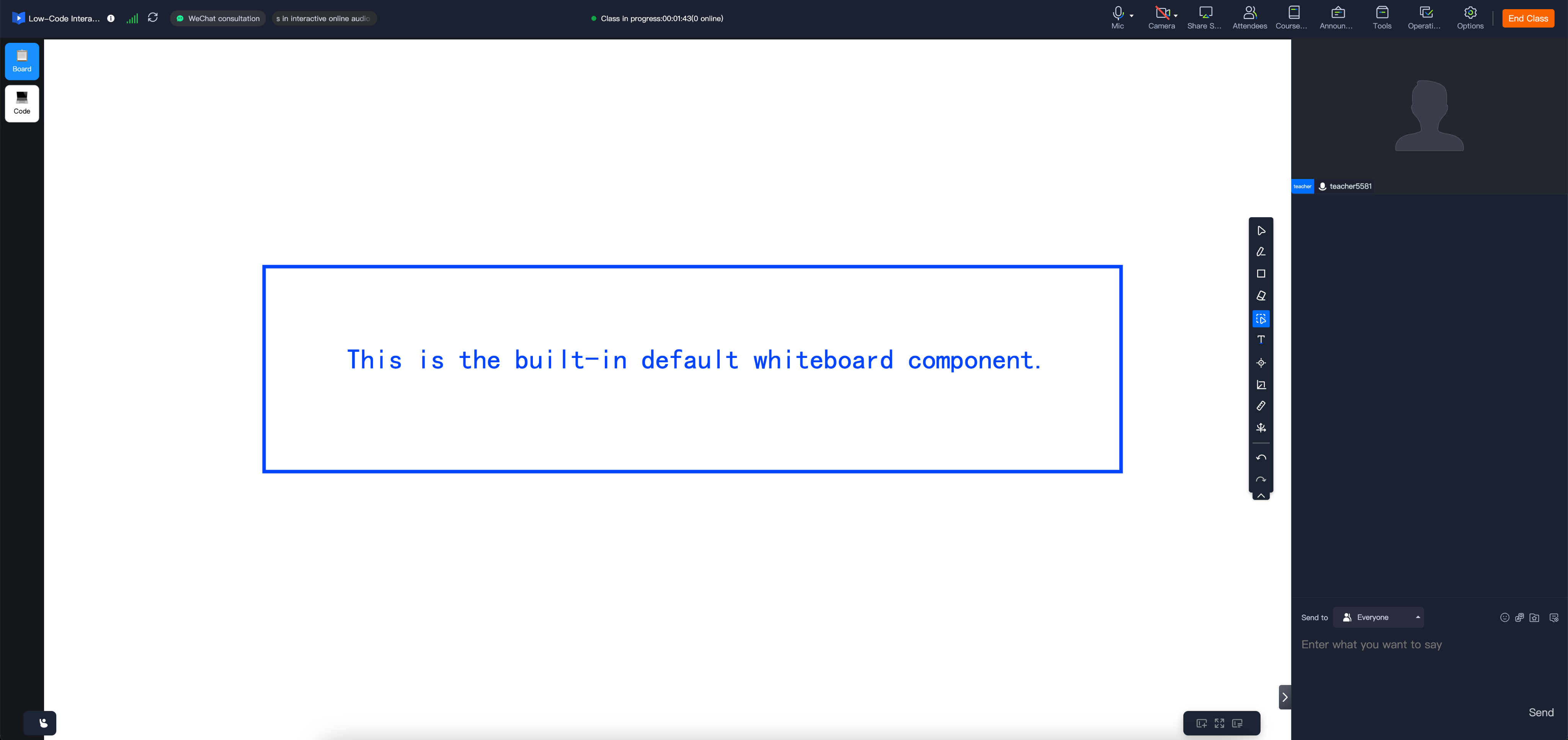 const boardInstance = TCIC.SDK.instance.getComponent('board-component').getVueInstance();// 切换到代码编辑器boardInstance.activateLayer('code-editor');// 切换回白板boardInstance.activateLayer('whiteboard');
