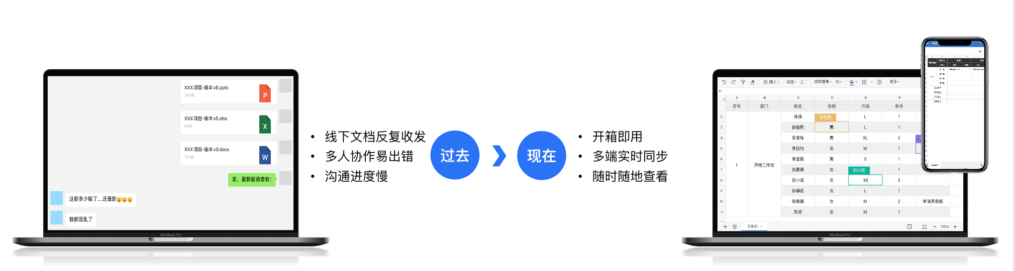 线上自动化触发审批、文件分发、数据收集等业务流程,修改后的内容实时同步,告别“反复传文件、版本混乱” 。