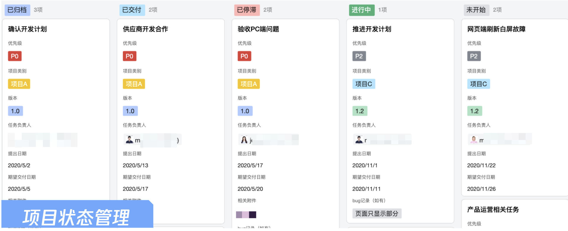 看板视图:不同状态下的项目管理、团队任务跟踪