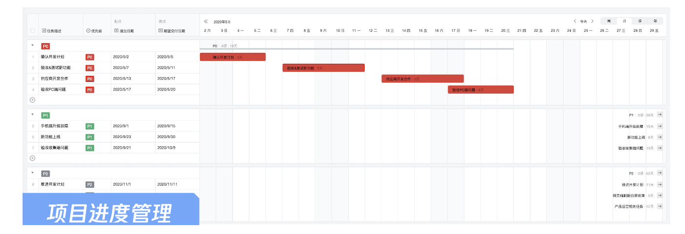 每个任务的责任人,也能通过时间进度的直观形式,了解到彼此正在做的事情,信息透明,也非常有利于团队目标的对齐,从而分工协作,进一步提升项目管理的效率。