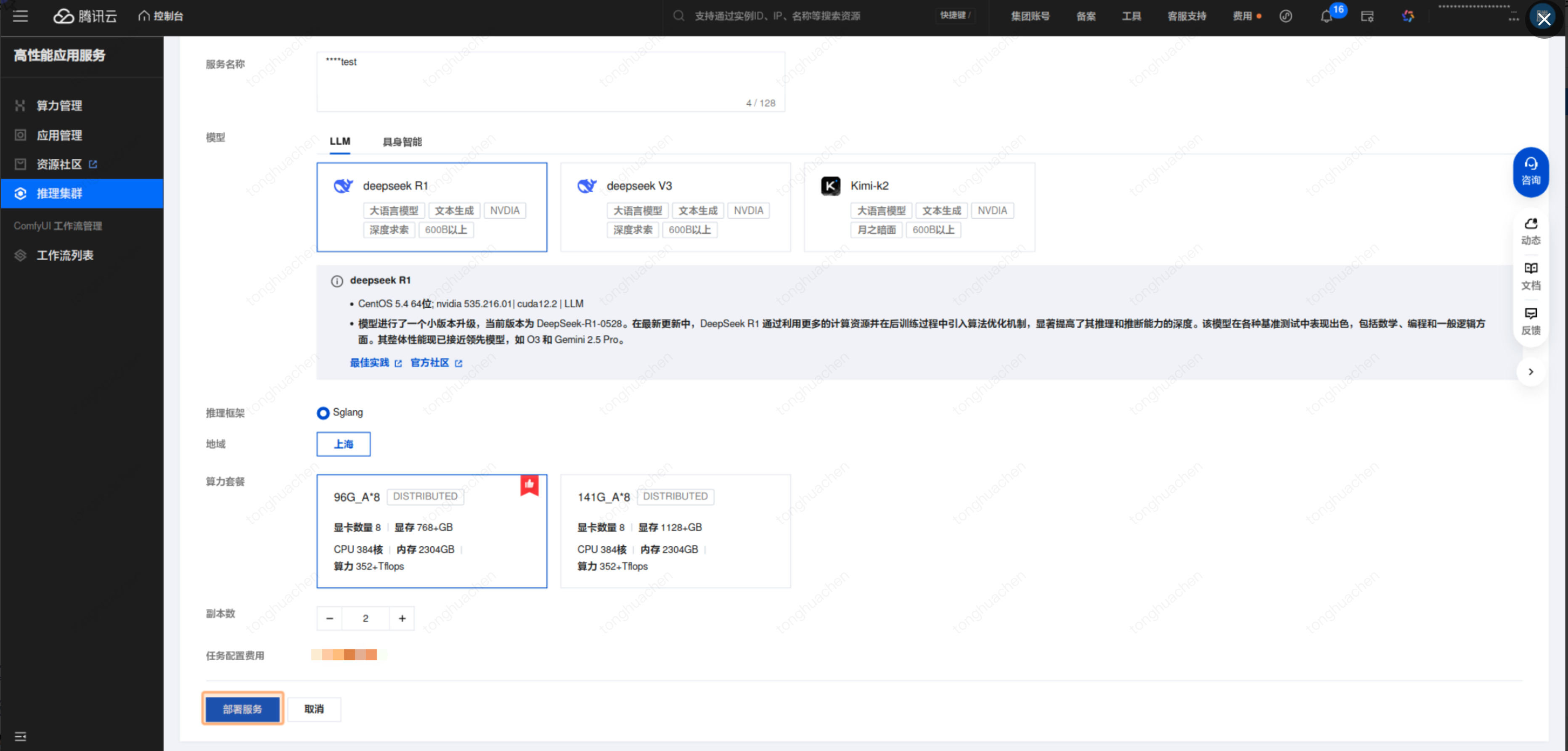4. 单击部署服务,即可完成部署您专有的推理集群。