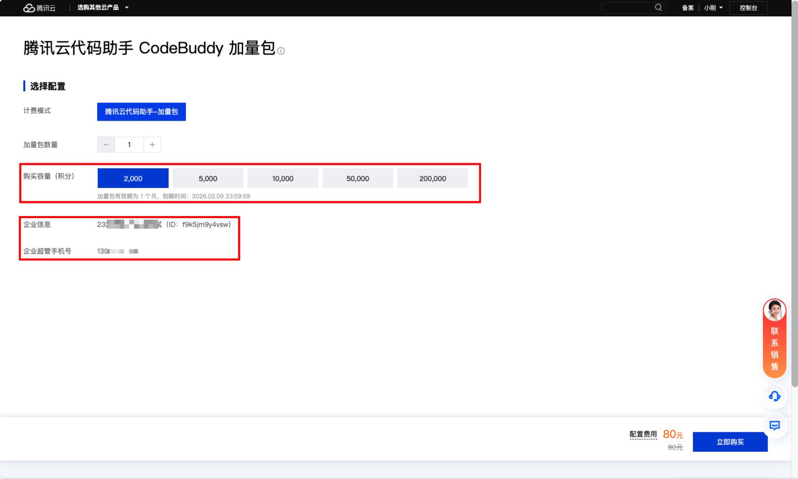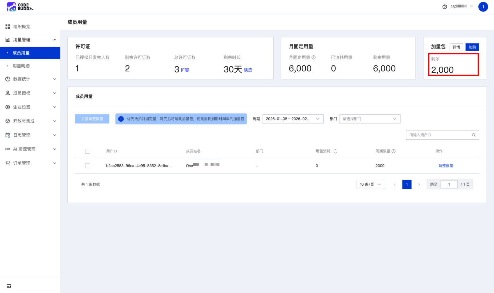https://<企业id>.copilot.qq.com/admin/usage/member,查看加量包是否到账。