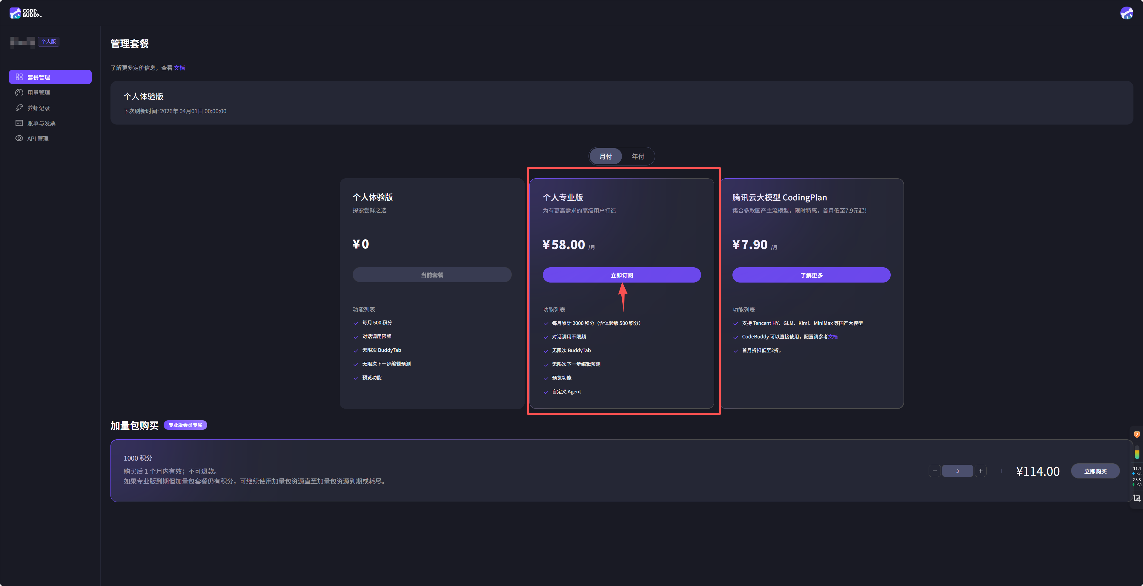 7. 选择购买时长,支持按月订阅或按年订阅。