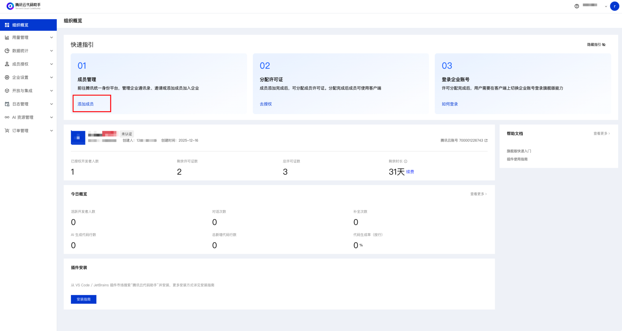 1. CodeBuddy 旗舰版使用「腾讯统一身份」进行企业成员管理,您可以单击下图入口,快速跳转至「腾讯统一身份」添加成员;