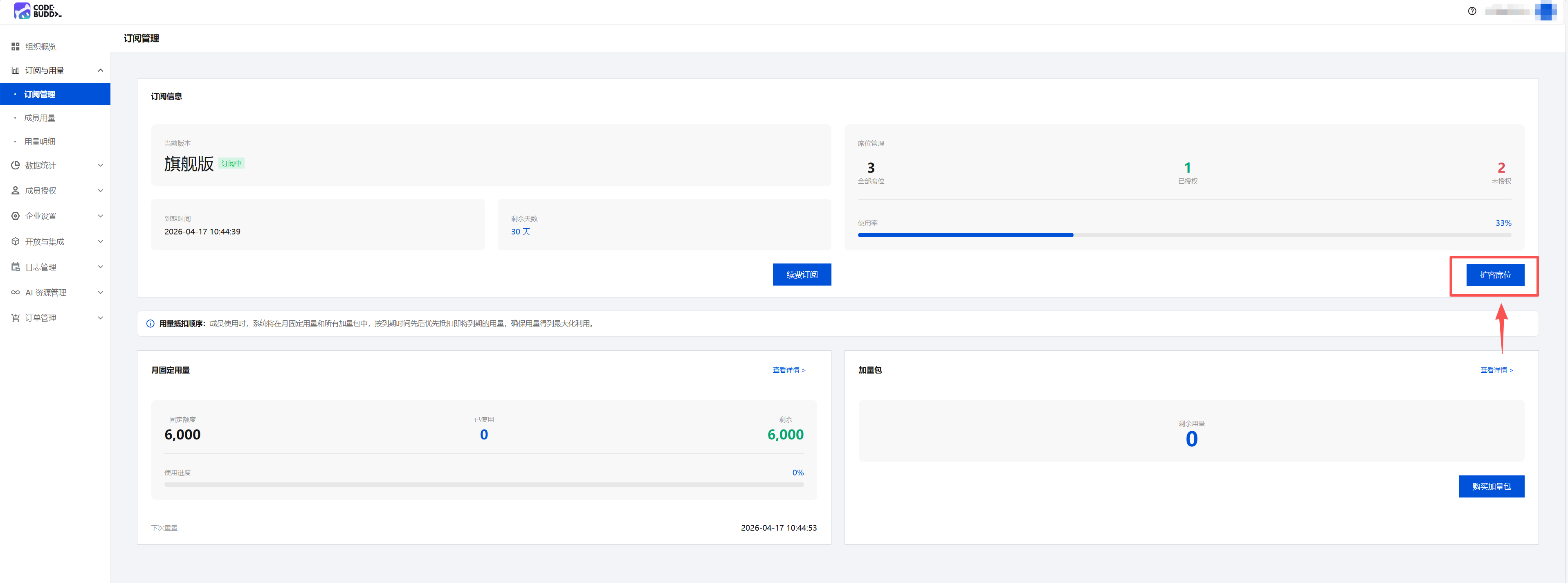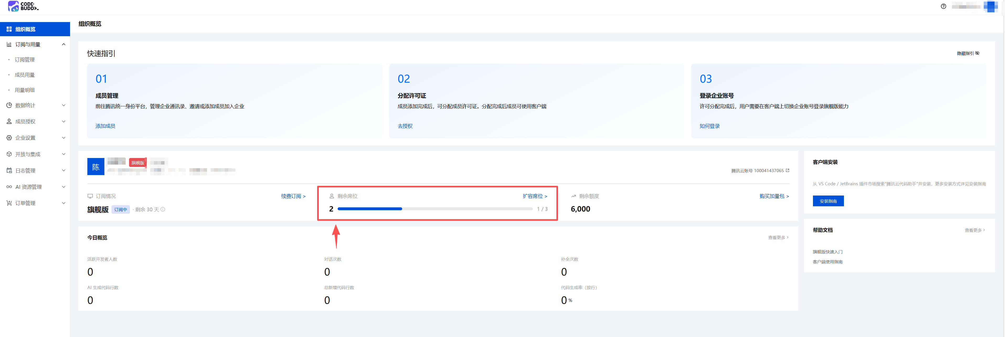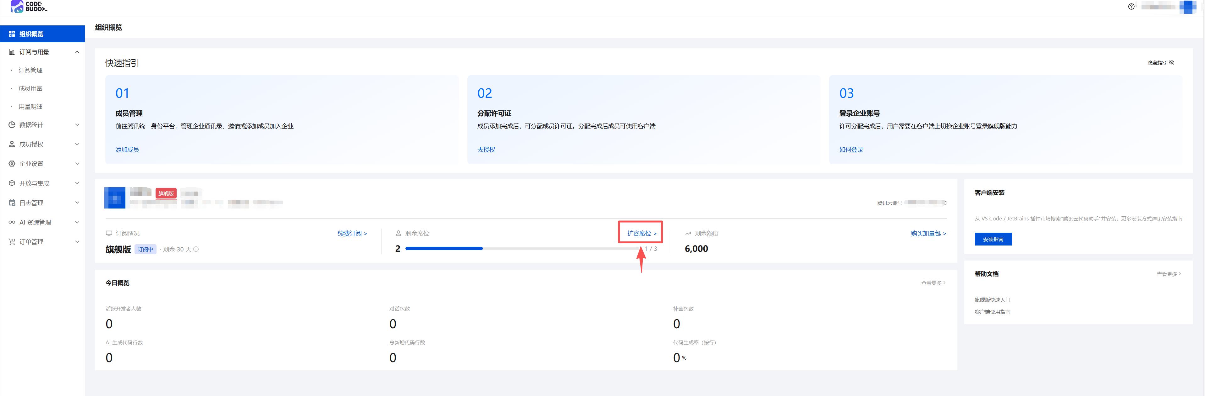请使用购买企业的腾讯云账号进行扩容(在概览中可查看腾讯云账号),若账号有误,请重新登录。