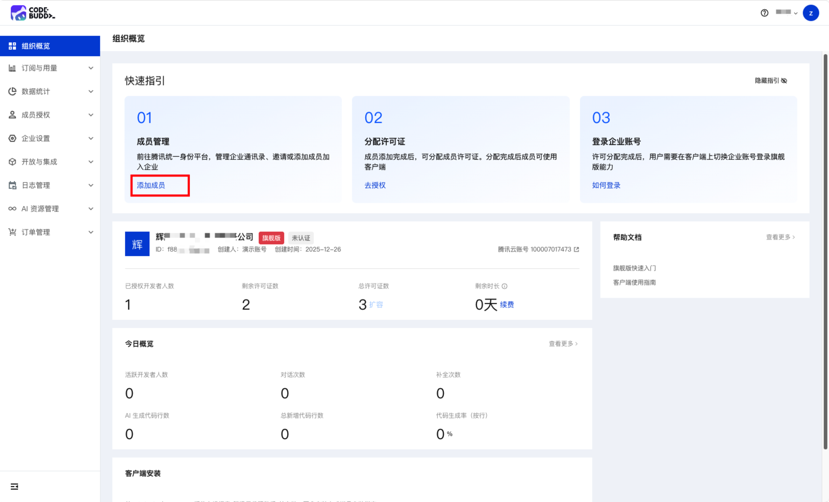 旗舰版已接入“腾讯统一身份”进行企业成员管理,若需要管理企业内成员,除了 CodeBuddy 管理员之外,还需要添加腾讯统一身份管理员权限;