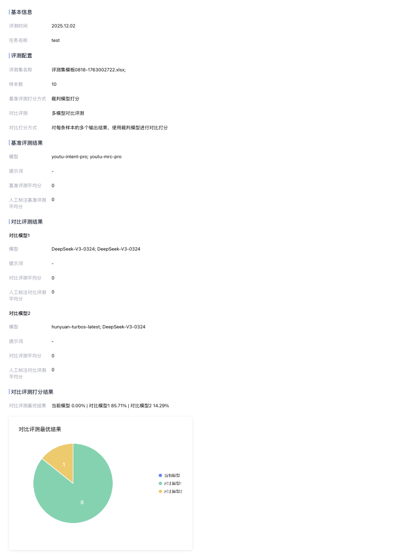 评测任务完成后,用户可对运行结果进行人工标注,以提升评测的准确性和参考价值。标注后的结果将体现在评测报告和下载的结果文件中。