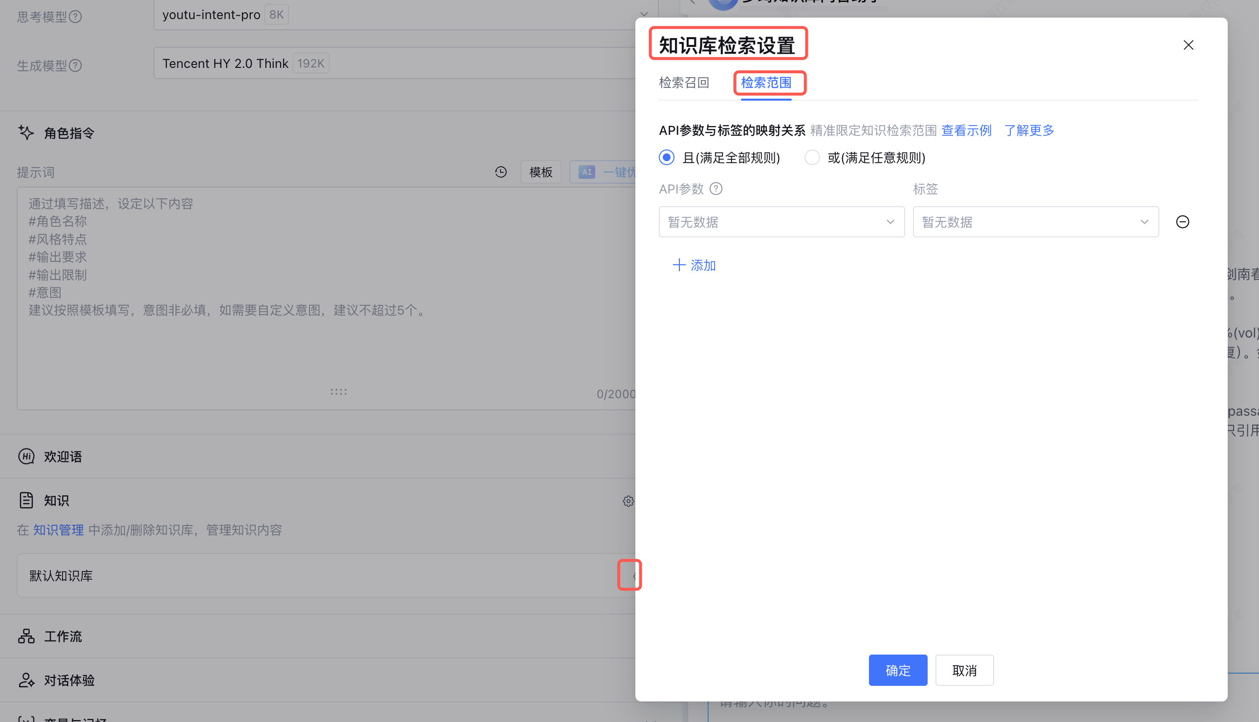 第三步:知识库检索范围设置