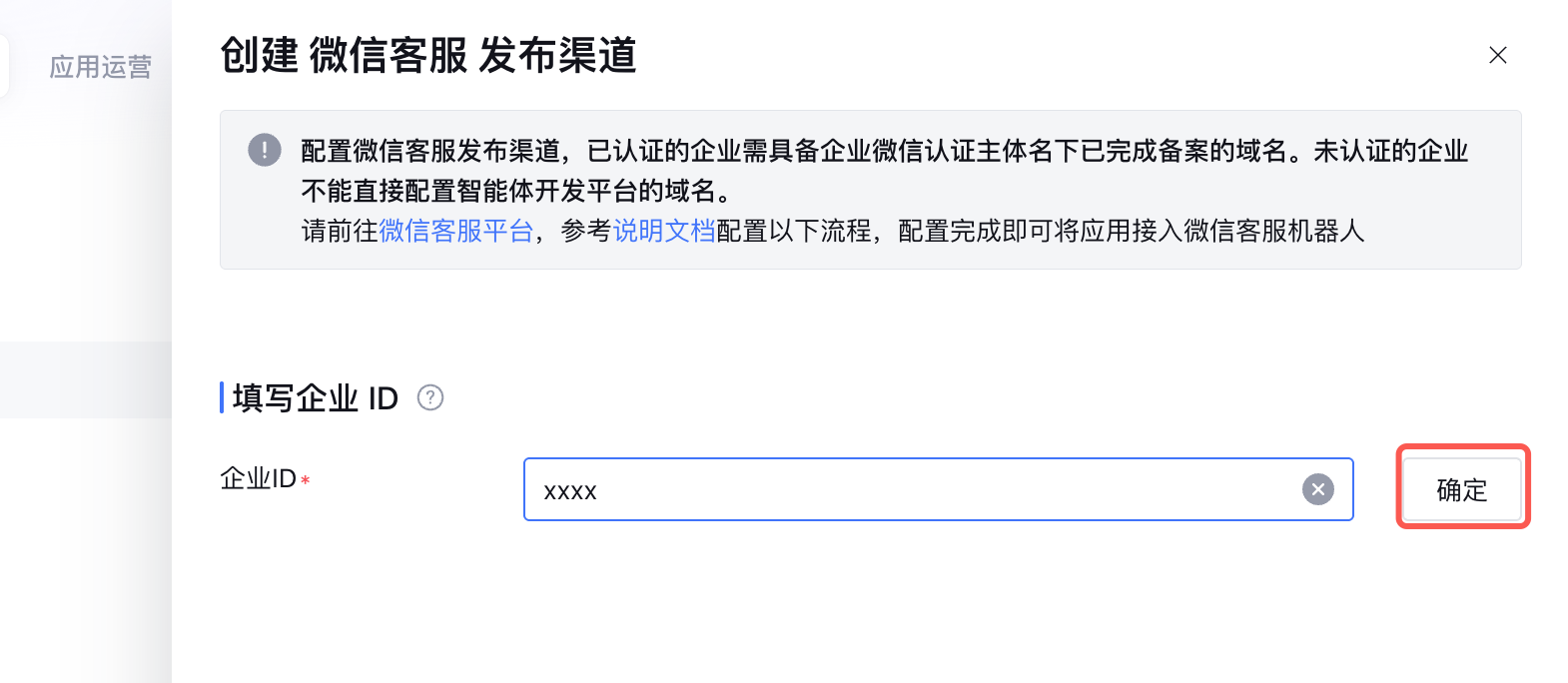 2. 输入步骤一 中获取的企业 ID,单击确定。