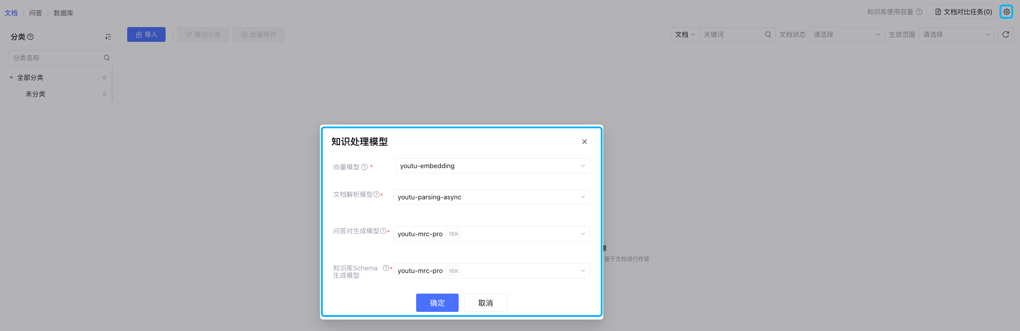 知识处理模型设置