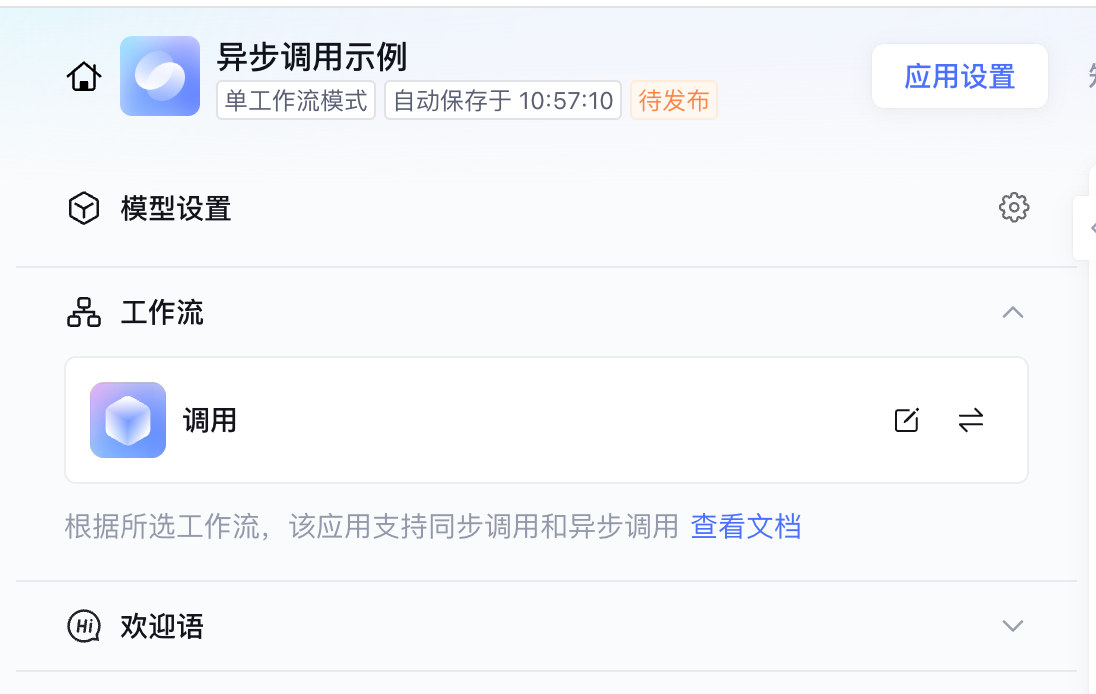 支持异步调用:根据所选工作流,该应用支持同步调用和异步调用。