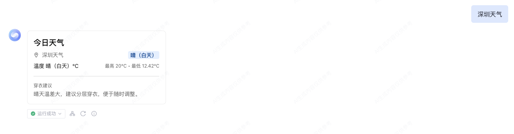 在工作流中可以通过添加 Widget 节点进行配置,以单工作流模式的应用天气查询为例配置 Widget,展示配置流程和应用效果。