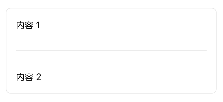 {"type": "Card","children": [{ "type": "Text", "value": "内容 1" },{ "type": "Divider", "spacing": "16px" },{ "type": "Text", "value": "内容 2" }]}
