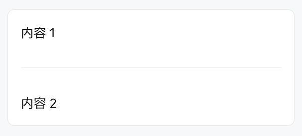 <Card><Text value="内容 1" /><Divider spacing="16px" /><Text value="内容 2" /></Card>