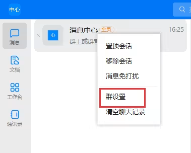 打开钉钉 PC 端,找到需要接收消息的钉钉群,右键单击