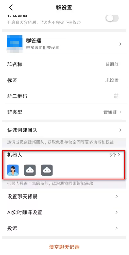 单击添加机器人右侧的设置图标 ,进入群机器人设置窗口。