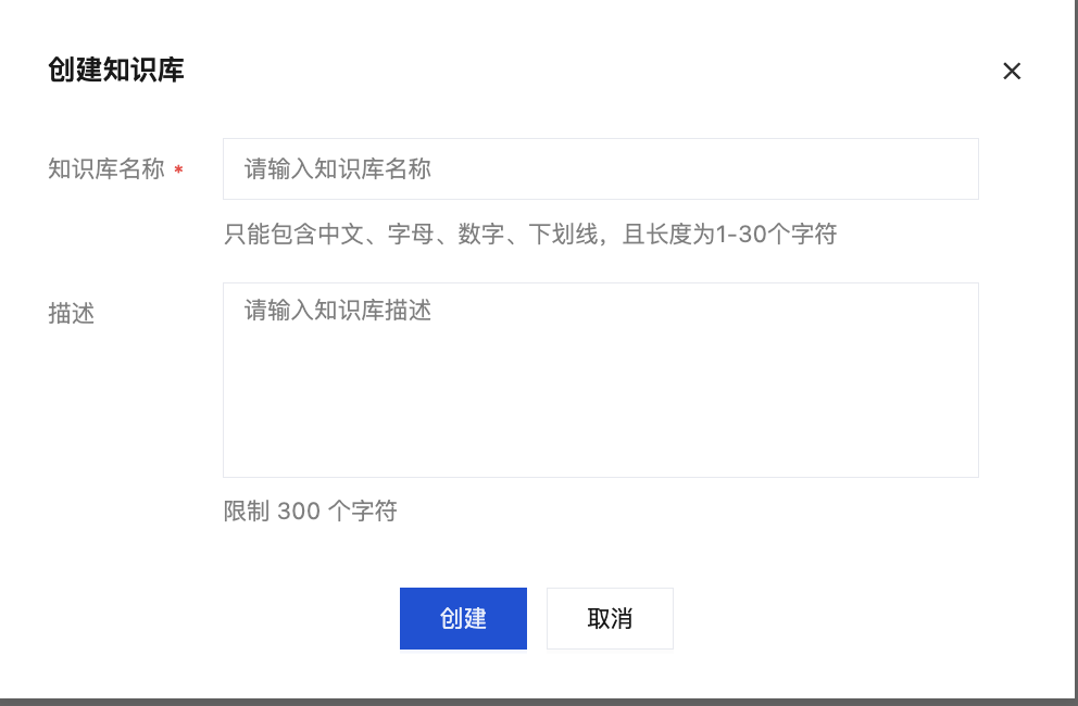 2. 输入知识库名称和描述后,单击创建完成