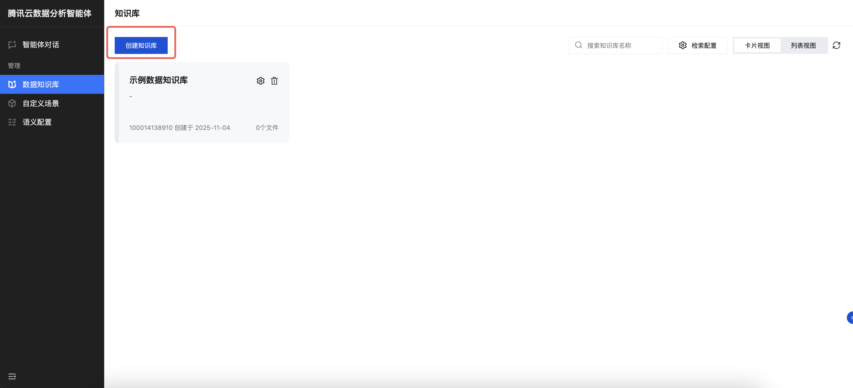 1. 进入TCDataAgent 知识库 模块,单击创建知识库。