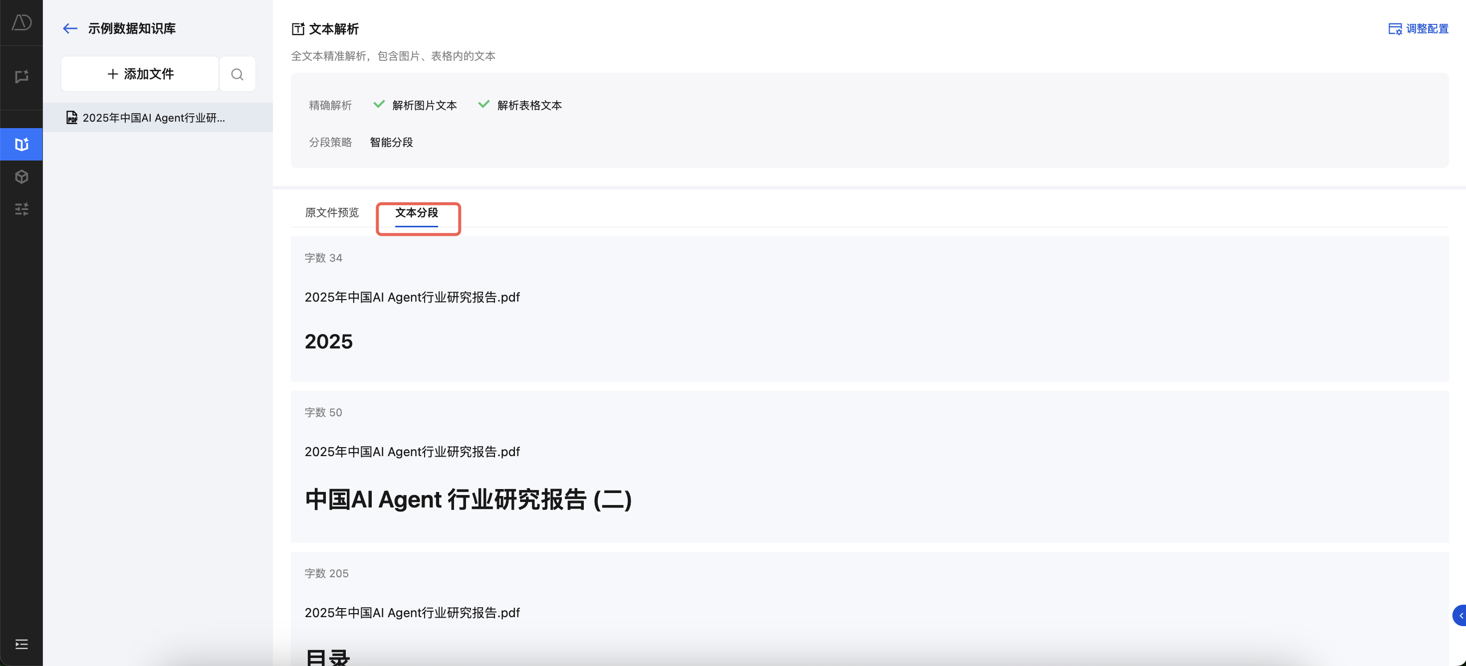 2. 进入文档分段详情页。