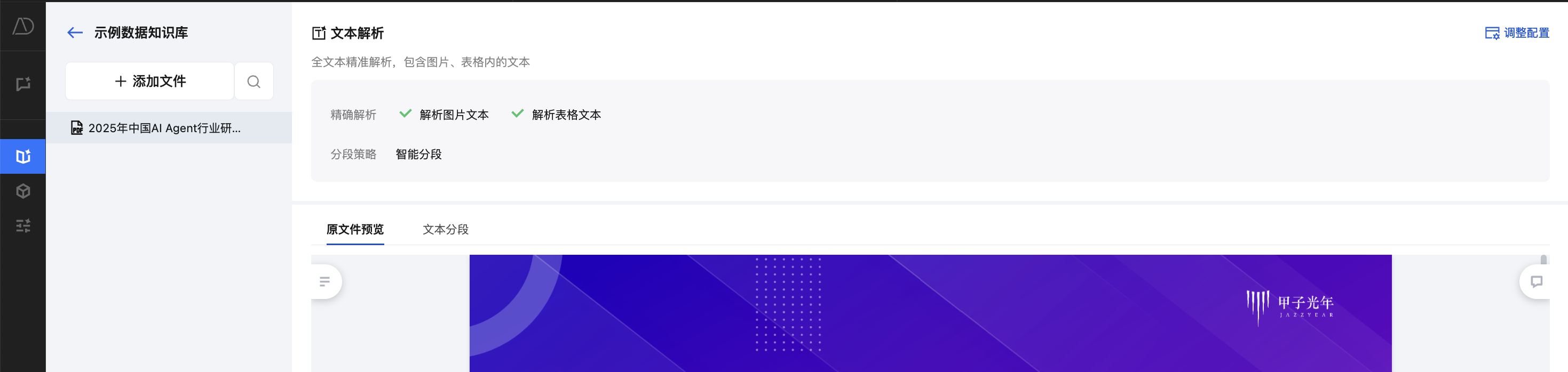 在文档分段方式上,TCDataAgent 默认使用根据语义自动分段的智能分段方式。若您需自行设置分段规则,可以在文档导入后进行配置调整。