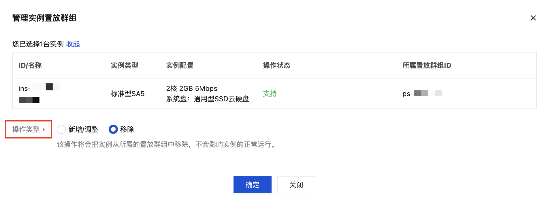 4. 操作完成后,请留意系统的操作结果提示。或通过查看实例的“置放群组”值是否已更新,以确认操作是否成功。