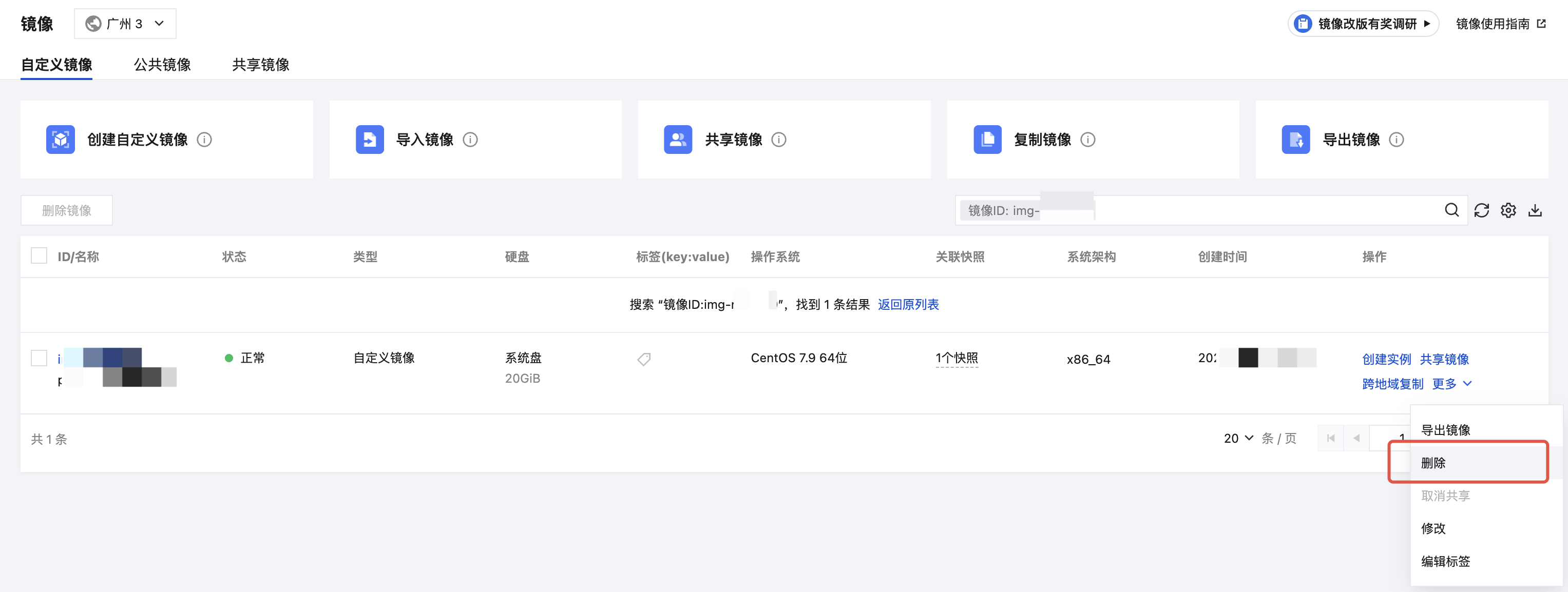 本文档指导您通过控制台或 API 删除自定义镜像。