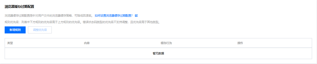 您可按需添加浏览器缓存过期规则,单击新增规则,支持指定文件类型/文件目录/文件路径/首页配置缓存行为。