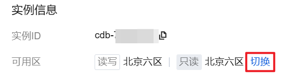 2. 在实例详情 > 实例信息 > 可用区后,单击切换。